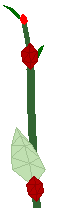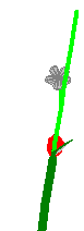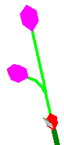 To see how plant parts are created during the simulation of plant growth in PlantStudio, let’s follow the fate of one meristem199WIB8 through the life of a plant. Let’s say this is the first meristem in the plant, the only active meristem when the plant started to grow. To make it easier to follow, we’ll call “him” Bud and show him in red in the pictures below.