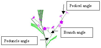 This parameter causes pedicels (flower stems) to taper as they approach the flower or fruit 3D object, so that the intersection of stem and 3D object looks more natural. For no tapering, set this index to 100%; for tapering, lower the index. Tapering works only on the screen and in DXF output; it doesn’t work for POV output. Tapering looks best in 2D output when there are more line segments per line (change the parameter General parameters: Number of segments to draw to create curved line). If your inflorescence stems are already thin, you won’t be able to see much tapering.