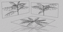 When you write plants to a 3D export file, you have the option of “pressing” them so that they appear flattened (as if pressed in a book). This is very simple; PlantStudio just writes out all the x, y, or z points as zero values. You can use this effect to create virtual paintings within your 3D compositions.
